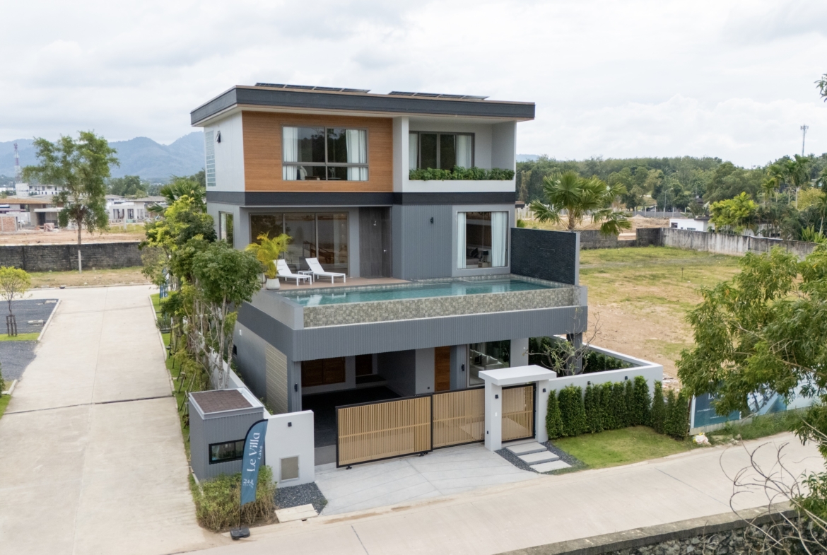 The properties are turnkey-ready, featuring a finished private swimming pool, air conditioning, and a western kitchen fully equipped with appliances.